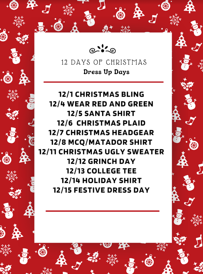 12 Days of Christmas Dress Up Days