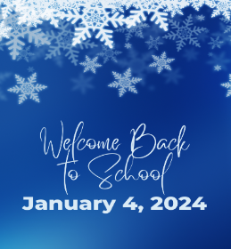 Happy New Year! We can't wait to welcome back our students on Thursday, January 4th, 2024!! We hope you had a wonderful holiday season and are ready to get back to school. We will resume our regular school schedule. If your students are registered with ACE, ACE will resume on Monday, January 8th.